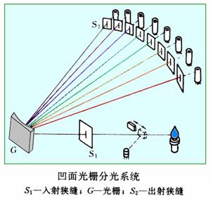 凹面光柵既具有色散作用也起聚焦作用(凹面反射鏡將色散后的光聚焦)。